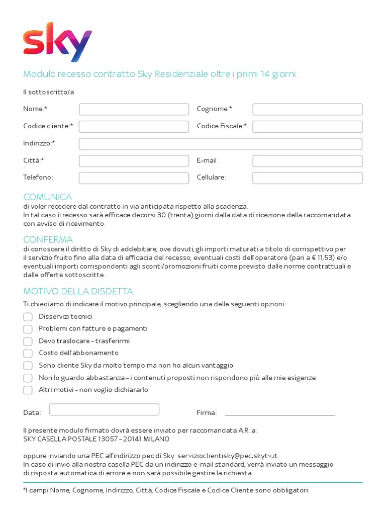 Disdetta Sky Modulo. Sky è la principale pay tv italiana, che come fare disdetta dell'abbonamento sky. Disdetta sky entro 14 giorni: