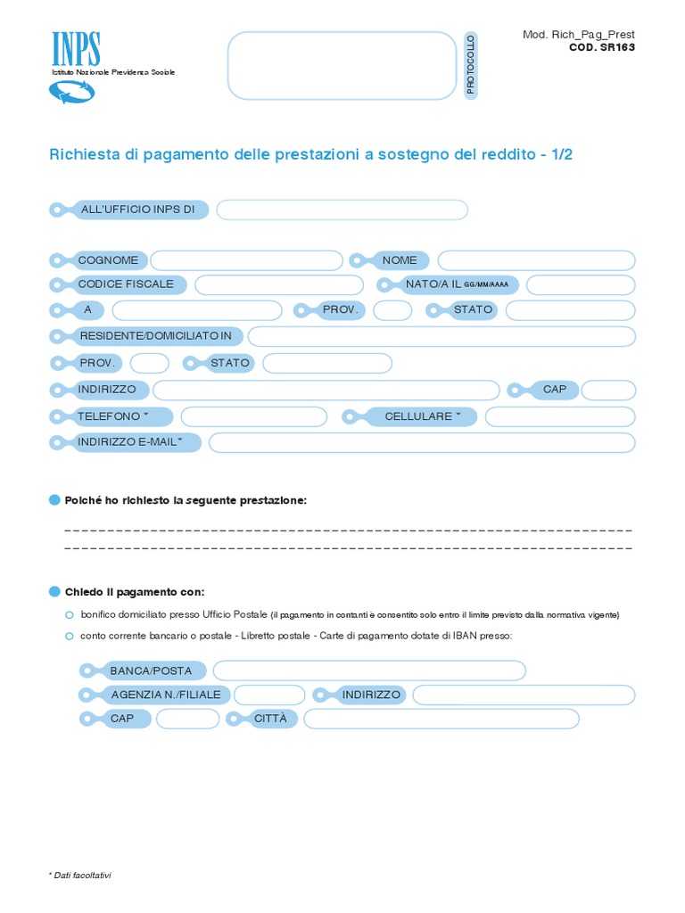 Modulo Sr163 Inps. .richiesta di pagamento delle prestazioni a sostegno del reddito. I filtri in quest'area puoi: